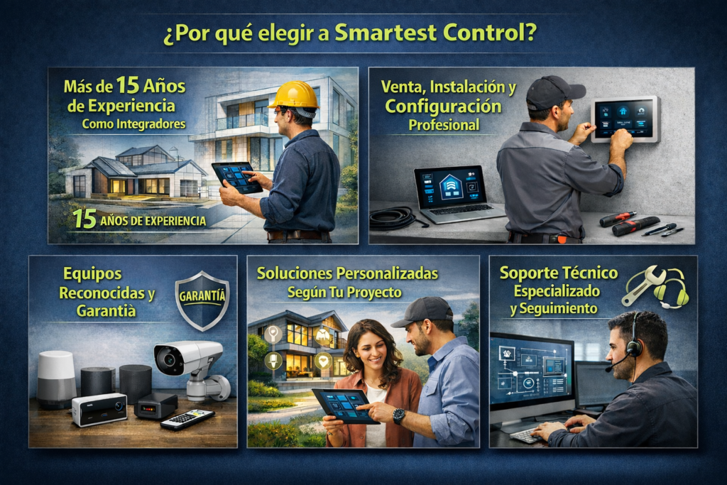 Con más de 15 años de experiencia como integradores, en Smartest Control ofrecemos instalación de cámaras de seguridad, alarmas y redes, integrando soluciones confiables con soporte técnico profesional.